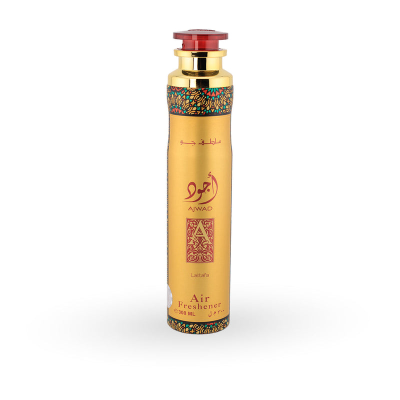 Ajwad Air Freshener 300ml by Lattafa brings a sweet, floral, and uplifting aroma to any room. It opens with juicy fruits and bright citrus for a refreshing start. The heart reveals soft rose, jasmine, and delicate florals that create a soothing, romantic atmosphere. As it dries down, warm vanilla, amber, musk, and light woods leave a comforting, long-lasting scent. Perfect for homes, offices, and cars, it enhances your space with a cozy and inviting sweetness inspired by the popular Ajwad perfume.