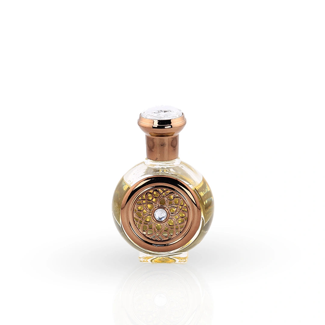 Anfas Al Oud Oil by Al-Rehab is an exquisite 15ml concentrated perfume oil presented in an elegant spherical bottle adorned with a rose gold mandala medallion and crystal center. This luxurious attar opens with romantic rose and bright bergamot, blooms into intoxicating jasmine, and settles into rich agarwood (oud), warm cedarwood, and earthy patchouli. The ornate brown packaging with gold geometric patterns reflects Arabian heritage. Perfect for oud enthusiasts seeking authentic concentrated oils with exceptional longevity, this precious blend delivers traditional Middle Eastern luxury in a jewel-like vessel.