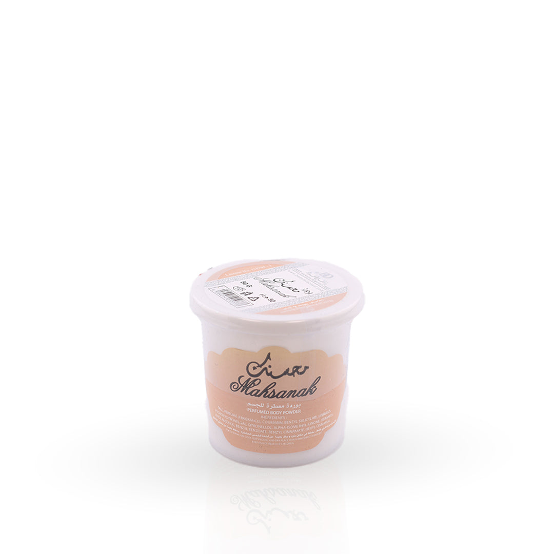 Mahsanak Perfumed Body Powder by Naseem is a delicate and elegant body powder designed to keep your skin fresh, soft, and beautifully scented all day long. Infused with a gentle yet luxurious fragrance, Mahsanak envelops you in a feminine blend of subtle florals, light musk, and a hint of sweet softness.