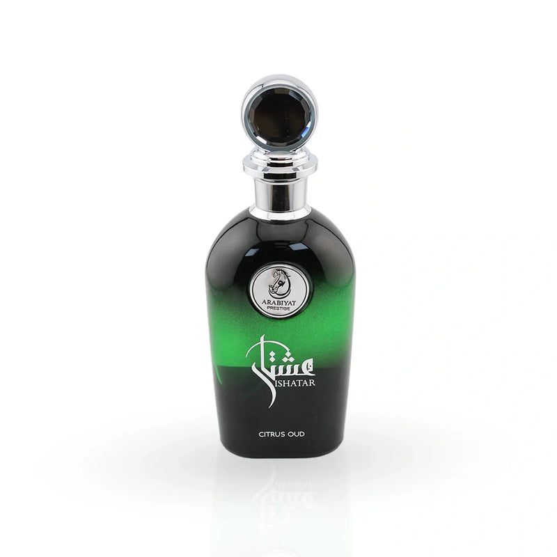 Ishatar Citrus Oud by Arabiyat Prestige (110ml Eau de Parfum) is a radiant unisex fragrance that blends sparkling citrus with the depth of oud. Opening with bergamot, lemon, and cardamom, it creates an uplifting freshness that transitions beautifully into a floral heart of orange blossom and jasmine. The scent settles into a sensual base of oud, cedarwood, patchouli, and musk, delivering warmth and sophistication. Perfect for daily wear or evening occasions, this perfume offers long-lasting freshness and a refined woody trail that suits every season.