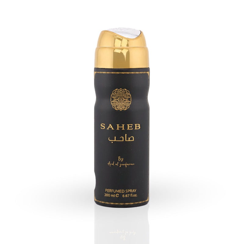 Saheb by Ard Al Zaafaran is a bold and sophisticated perfumed deodorant spray crafted for the modern gentleman. It opens with a fresh and spicy blend of citrus and aromatic spices, creating an invigorating first impression. The heart reveals elegant rosewood and cedar, wrapped in golden saffron for an exotic twist. The dry down settles into rich oud and amber, softened by smooth musk for a warm, long-lasting finish. Sleekly bottled in matte black and gold, Saheb is perfect for daily use, delivering freshness with the refined presence of a full-bodied fragrance.