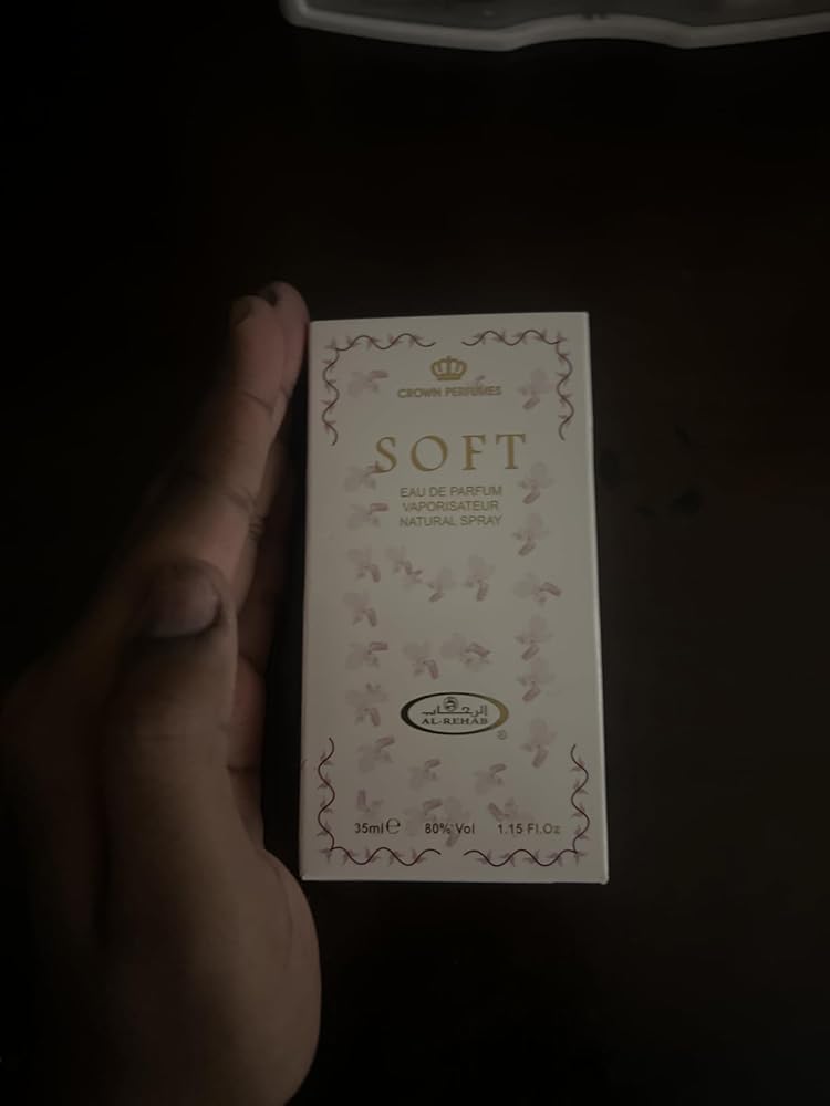 Soft by Al-Rehab (35ml) is a luxurious floral-citrus perfume that radiates sophistication and grace. Opening with bright lemon and mandarin, it transitions into a delicate heart of jasmine, rose, and peach, creating a perfectly balanced, uplifting scent. The soft floral notes linger beautifully on the skin, leaving a fresh yet elegant trail that suits both daily wear and special occasions. Compact and travel-friendly, Soft by Al-Rehab embodies refined charm and effortless beauty, making it a timeless addition to any fragrance collection.